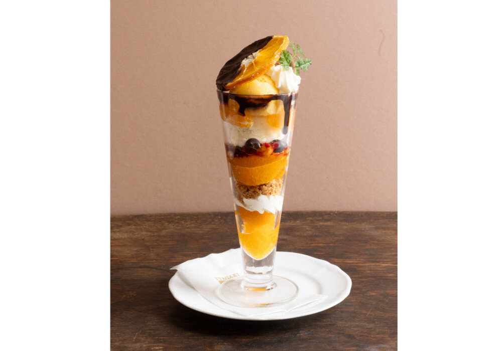 旬のおすすめの柑橘とチョコレートをメインに組み合わせました。 自家製オレンジシャーベット、爽やかな酸味のある柑橘に香り高いチョコレートとキャラメリゼしたバナナ、甘酸っぱいフランボワーズやサクサク香ばしいクランブルなど、多彩な味わいをお楽しみいただけます。 金柑入りソースで後味すっきりと締めくくる、満足感と爽快感あふれる春限定パフェです。
