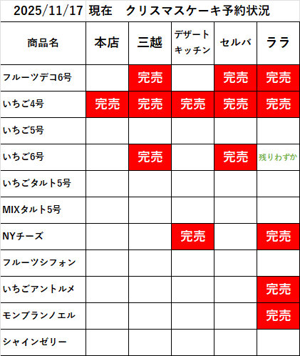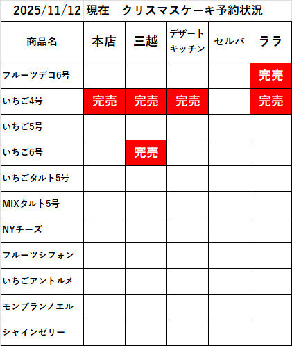 今年のいたがきのクリスマスケーキの受付は11月10日(月)より開始いたします。