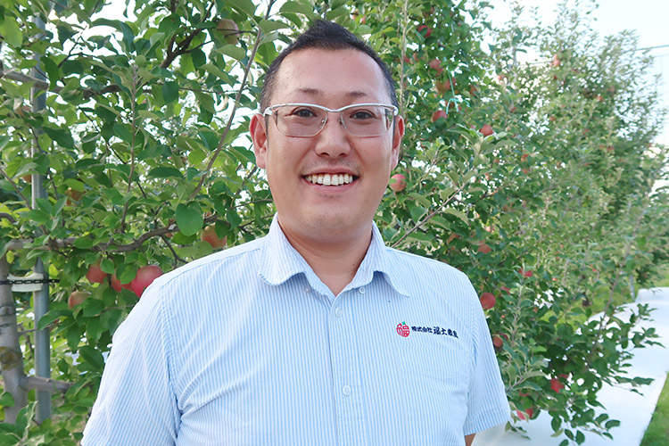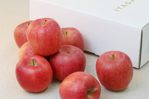福士農園は、純国産有機肥料を使用し、低農薬で環境にも優しい高密植栽培という方法で高品質の果実をつくりあげる、りんご専門の若き篤農家です。先代から受け継いだこだわりの堆肥で豊かな土壌にし、近年の異常気象にも対応できるよう努力と勉強を重ね、最新の技術を用いています。今年は甘みが強く人気の「名月」もご用意しました。こだわりの栽培技術で育て上げたりんごを是非ご賞味ください。