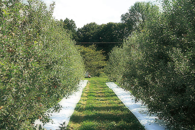 灌水設備が張り巡らされた、環境にも優しい高密植栽培