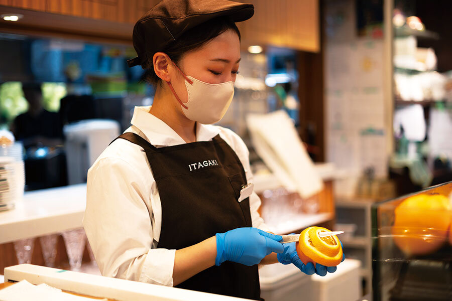 心地よい空間で美味しいフルーツを通してお客様にゆったりとした時間をお過ごしいただくことが私たちの仕事なので、そのためにスタッフが明るく前向きでいることが大切です。本店カフェはお互いをサポートしながら笑顔で働けるようにチームワークを重視していて、そこがこの職場の魅力です。忙しい時でも助け合い、それを乗り越えた時は「頑張ったね」、「お疲れ様」と声を掛け合える、そんな雰囲気で働けるのが嬉しいです。
