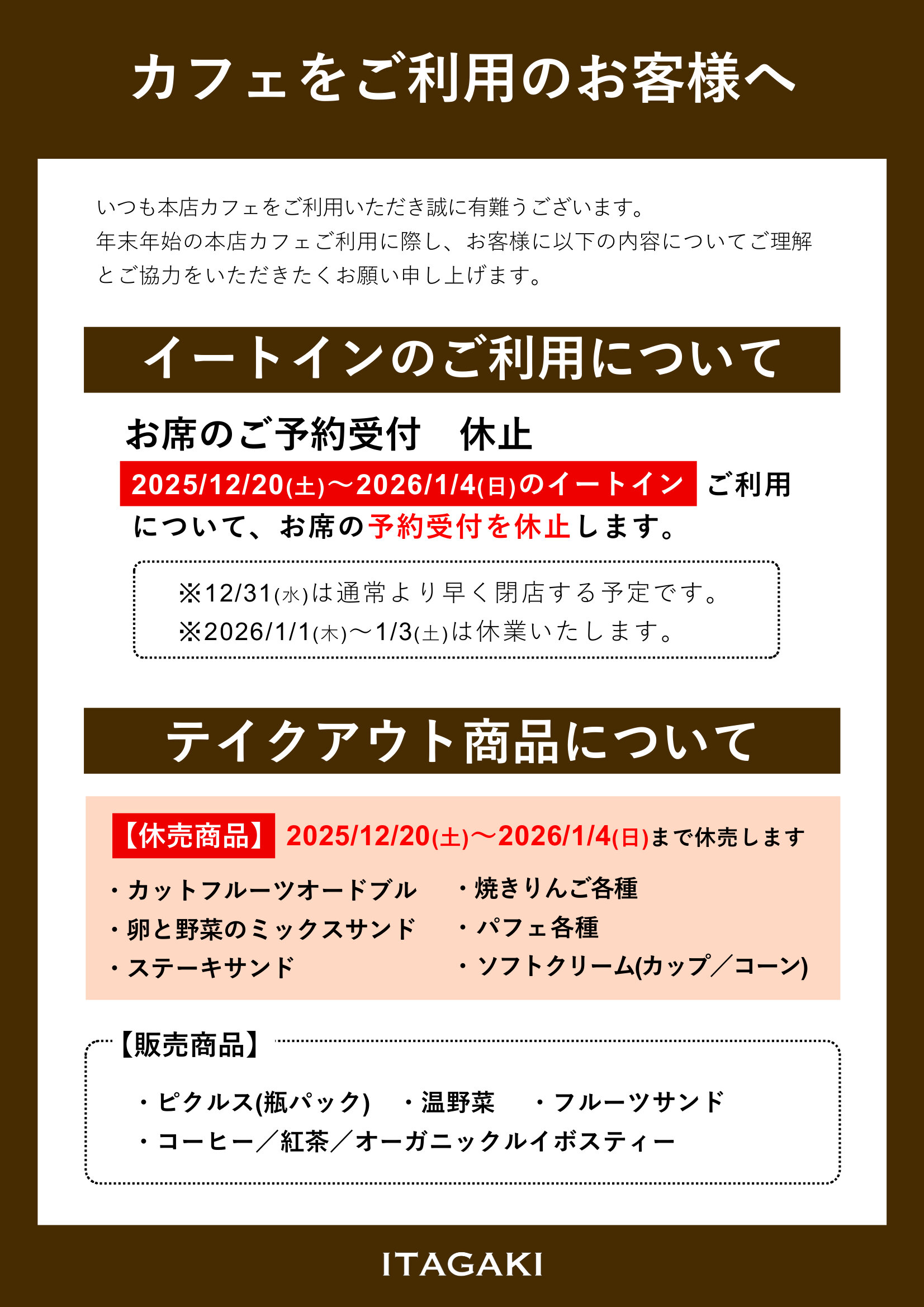 平成24年3月にリニューアルオープンした「いたがき本店」は、仙台駅東口から徒歩8分の距離にあり、ゆったりしたスペースの中はいつもフルーツの香りに包まれています。ご贈答用の果物や日々の生活に欠かせない果物の数々、ドライフルーツ、ナッツ類、フルーツをたっぷり使ったケーキやゼリー、材料にこだわった焼き菓子、野菜や果物を豊富に使用したカフェメニューなど、体に優しい商品を多数取り揃えてお待ちしております。