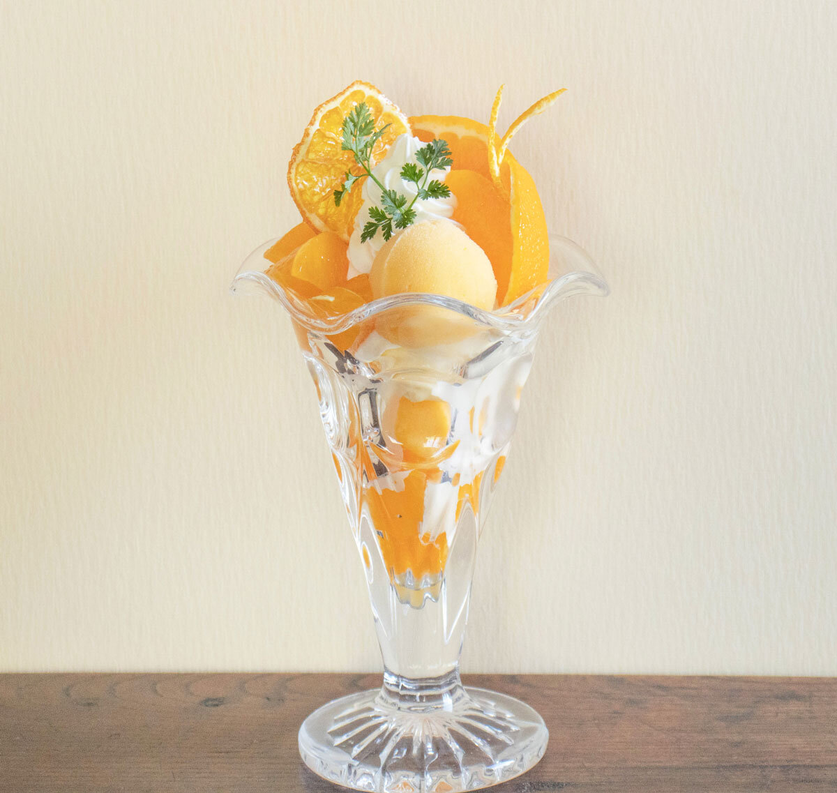 旬のデコポンを丸ごと1個使用した春季限定パフェ。爽やかな味わいをお楽しみください。